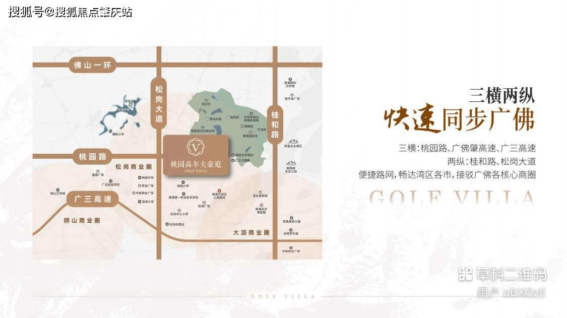 「臻崇社交 圈层之冠」桃园圈层·风云人物云集 项目毗邻为南海桃园高尔夫球场,占地约2000亩,为27洞108杆国际标准场地,内包含多个功能区,传统与现代交融,圈层聚会理想之所。